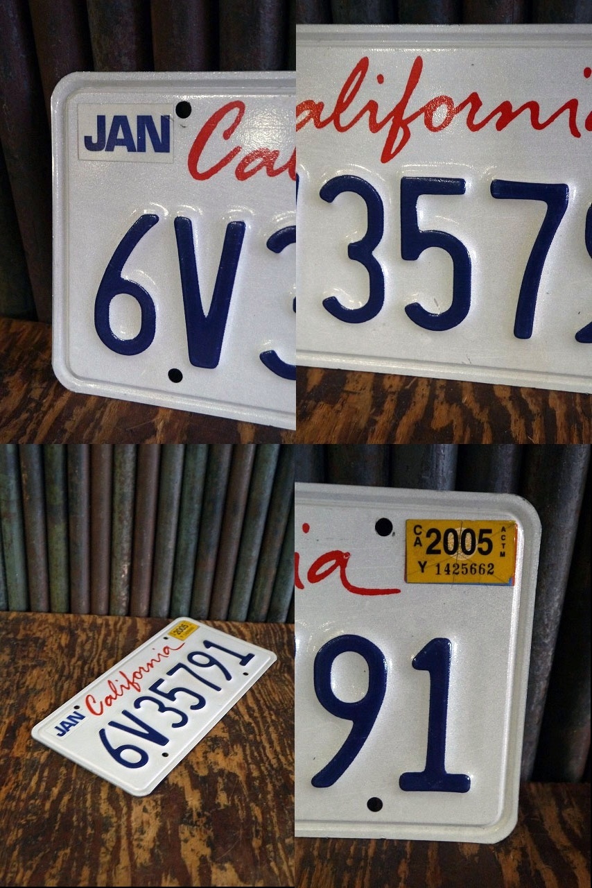 アメリカにて買い付けしましたUSA CALIFORNIAナンバープレートです。アメリカカリフォルニア州の車に取り付けられて使用されるナンバープレートになります。軽いスチールアルミ素材で、2007年7月〜2010年12月迄採用された定番のデザインです。状態ですが、多少の擦れ、傷、汚れや凹みや歪みなどありますが、ディスプレイには問題ない雰囲気のある状態です。ただあくまでユーズドですのでご理解いただける方のご購入をよろしくお願いします。