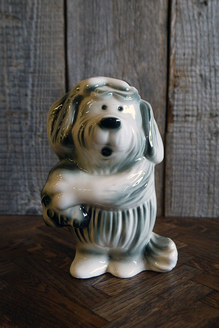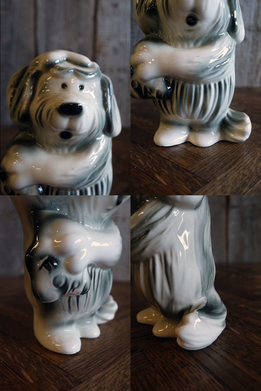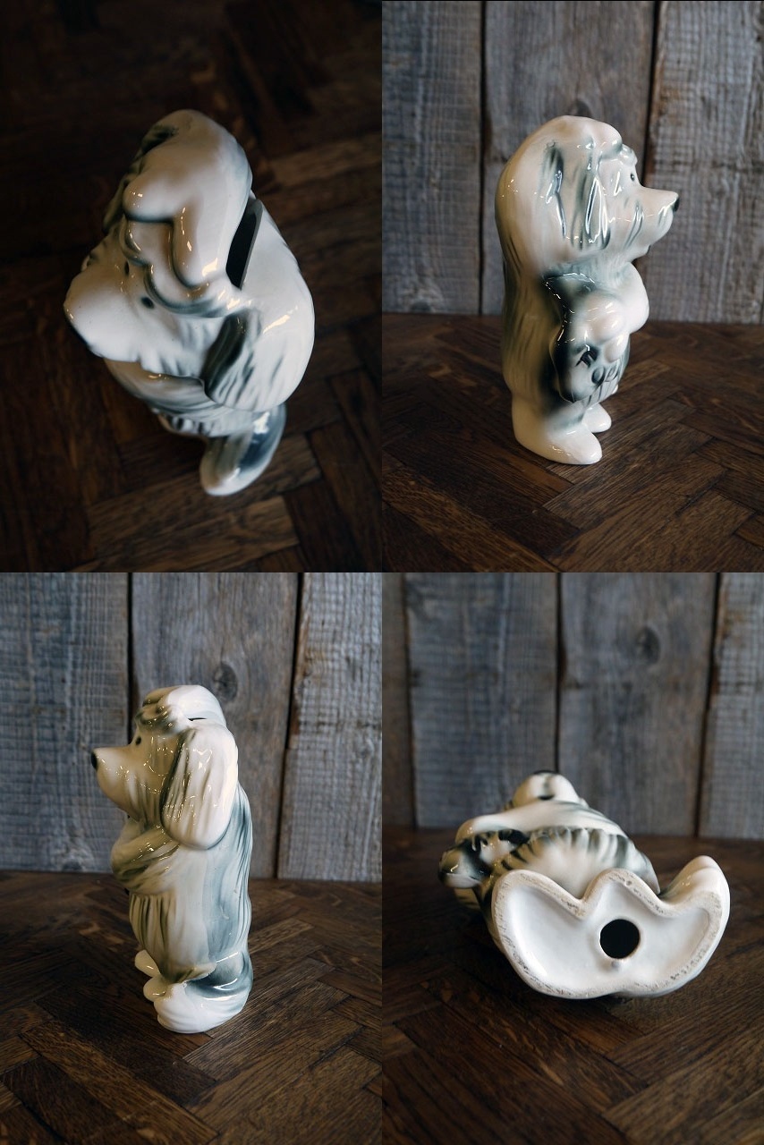 アメリカで買い付けてきましたビンテージのGalpin FORD キャラクタードール貯金箱です。人気MOTOR企業のマスコットキャラクターで、1958年から1970年代頃まで登場していた可愛いDOGモチーフのデザインになります。陶器素材で、年代の表記はありませんがデザインから1960年代前後頃かと思います。状態は経年による多少の擦れ、底面に多少の汚れや生産工程上に出来たと思われる気泡穴などはありますが、特に目立つ様なダメージも無くディスプレイに問題ない状態で良いです。あくまでビンテージのためご理解いただける方のご購入をお願いします。