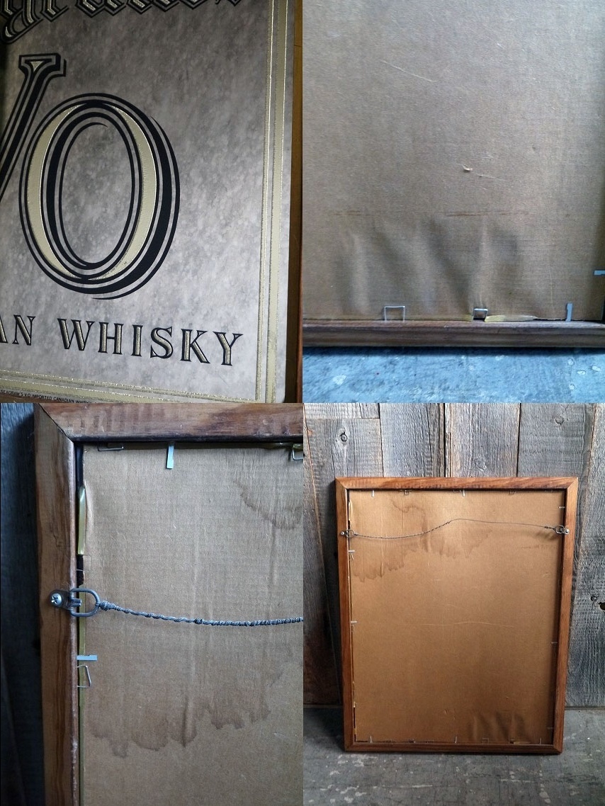 アメリカで買い付けましたビンテージのSeagram's V.O.パブミラー です。カナダの老舗ウイスキーメーカーの販促用ミラーで、木枠も重厚感があり、デザイン性も高く大変おしゃれで雰囲気があります。ガラス×ウッド素材で、年代の表記はありませんが恐らく1980〜90年代前後頃になるかと思います。状態ですが画像の様にウッドフレームに多少の小傷や擦れ、多少のミラーのくすみや内側に汚れ等の使用感ははありますが、ディスプレイには問題ない状態で良いです。ただあくまでビンテージになりますのでご理解いただける方のご購入をお願いします。