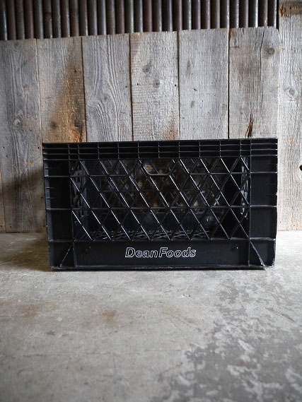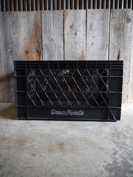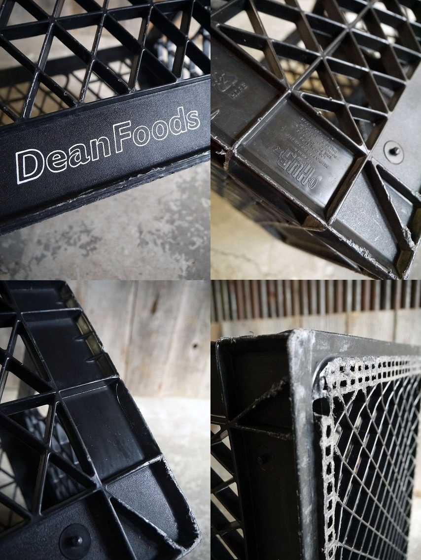 アメリカで買い付けましたUSAのDean Foodsケースです。渋いブラックカラーに使い込まれたリアルな風合い&シンプルなデザインもとても雰囲気があります。アメリカの食料品メーカーの運搬用ケースで、多少軽めのプラスチック素材の作りになります。年代の表記はありませんがでデザインから2000年以降かと思います。状態ですが経年による多少の色褪せ、画像の様に多少の湾曲や汚れ、底のすり減りや画僧の様なひび割れ等はありますが、比較的しっかりとした作りで実用ディスプレイ等には問題ない程度です。ただあくまでビンテージになりますのでご理解いただける方のご購入をよろしくお願いします。
