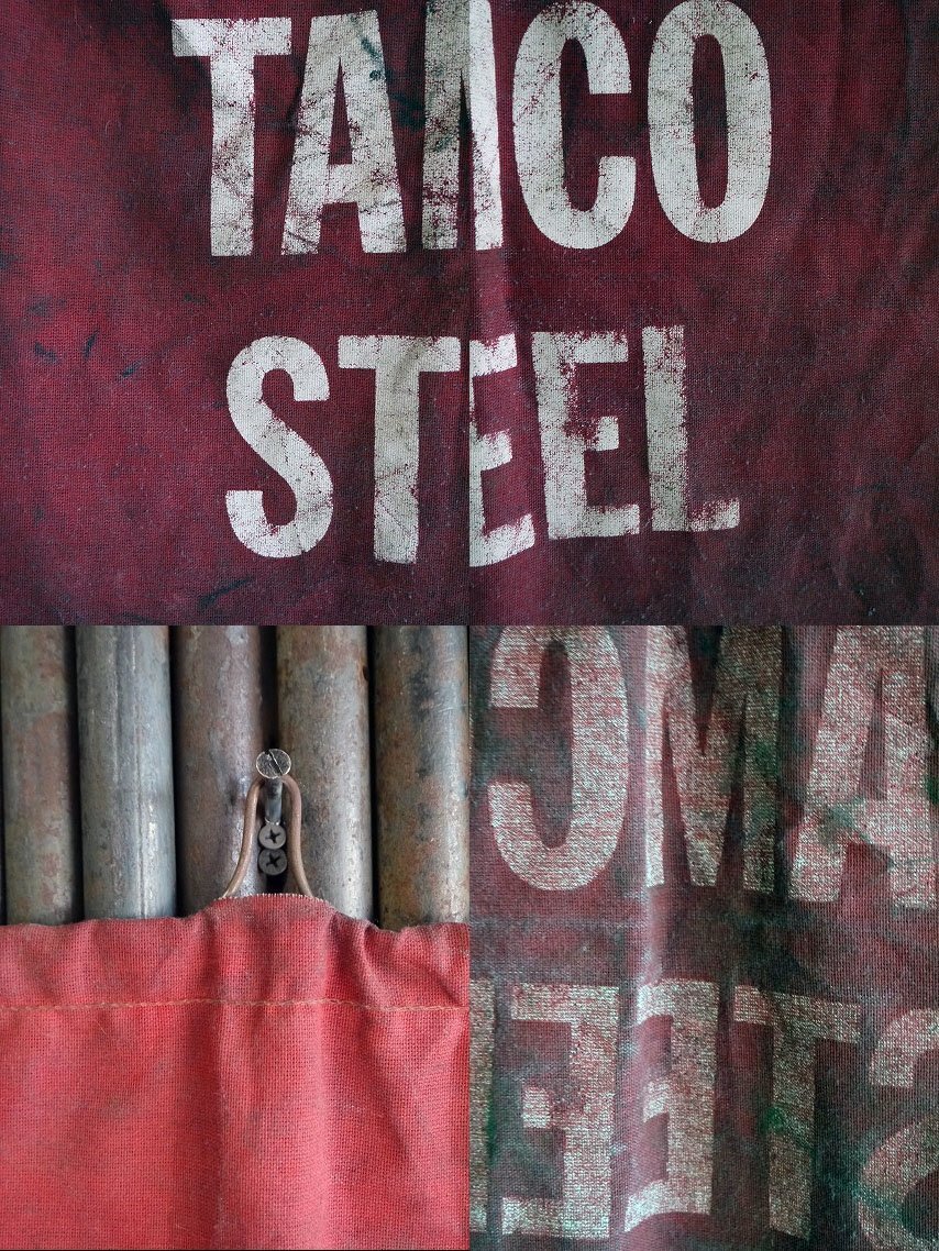 アメリカで買い付けたビンテージのTAMCO STEEL SAFETY FLAGです。レッドカラーにアメリカンなロゴデザインが抜群の雰囲気です。アメリカのピックアップトラック等に重量超過の荷物を積載する際につける注意喚起のフラッグになります。恐らくナイロン混素材で年代の表記はありませんがロゴデザインから1950〜60年代前後頃かと思います。状態ですが経年による小傷や擦れ、ご蔵王のような 解れ、全体的な汚れ、シワなどはありますが、生地のはりもあり、雰囲気を損なうようなダメージもなくビンテージならではの雰囲気のある状態です。あくまでビンテージになりますのでご理解いただける方のご購入をよろしくお願い致します。
