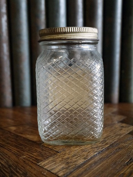 アメリカで買い付けてきたビンテージのIMPERIAL₋EASTMAN PARTSガラス瓶です。MOTORパーツメーカーの収納瓶で、重量感のあるガラスに格子模様のデザイン&ペーパーデカールがとても雰囲気がありかっこいいです。ガラス×メタル蓋、側面のエンボスロゴからDURAGLAS社製、ガレージなどの実用兼ディスプレイとして大変おすすめです。底の刻印に37の表記がありますので1937年製になります。状態ですが上蓋に金属特有の劣化、サビやマジックロゴ、ガラスにくすみ、傷や擦れ、汚れ、ペーパー部分の劣化ダメージといった使用感はありますが使用に差し支えがでるような目立つダメージもなく実用にも問題ない状態です。ただあくまでビンテージですので理解のある方のご購入をお願いします。