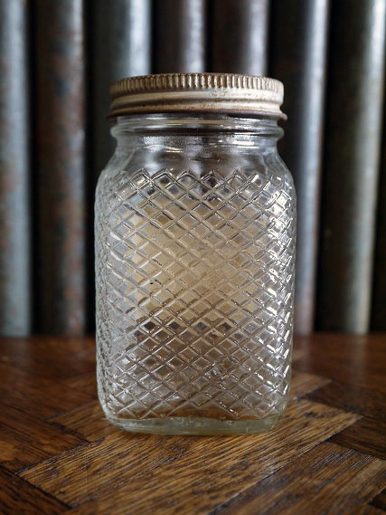 アメリカで買い付けてきたビンテージのIMPERIAL₋EASTMAN PARTS ガラス瓶 です。MOTORパーツメーカーの収納瓶で、重量感のあるガラスに格子模様のデザイン&ペーパーデカールがとても雰囲気がありかっこいいです。ガラス×メタル蓋、側面のエンボスロゴからDURAGLAS社製、ガレージなどの実用兼ディスプレイとして大変おすすめです。底の刻印に37の表記がありますので1937年製になります。状態ですが上蓋に金属特有の劣化、サビやマジックロゴ、ガラスにくすみ、傷や擦れ、汚れ、ペーパー部分の劣化ダメージといった使用感はありますが使用に差し支えがでるような目立つダメージもなく実用にも問題ない状態です。ただあくまでビンテージですので理解のある方のご購入をお願いします。