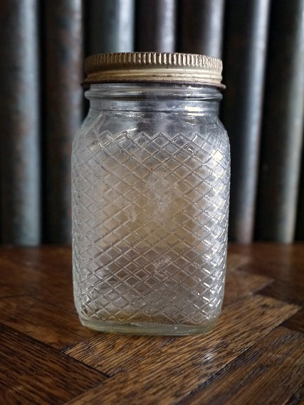 アメリカで買い付けてきたビンテージのIMPERIAL₋EASTMAN PARTS ガラス瓶です。MOTORパーツメーカーの収納瓶で、重量感のあるガラスに格子模様のデザイン&ペーパーデカールがとても雰囲気がありかっこいいです。ガラス×メタル蓋、側面のエンボスロゴからDURAGLAS社製、ガレージなどの実用兼ディスプレイとして大変おすすめです。底の刻印に37の表記がありますので1937年製になります。状態ですが上蓋に金属特有の劣化、サビやマジックロゴ、ガラスにくすみ、傷や擦れ、汚れ、ペーパー部分の劣化ダメージといった使用感はありますが使用に差し支えがでるような目立つダメージもなく実用にも問題ない状態です。ただあくまでビンテージですので理解のある方のご購入をお願いします。