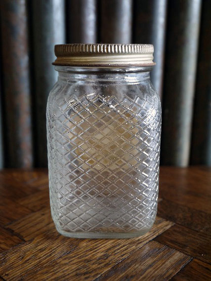 アメリカで買い付けてきたビンテージのIMPERIAL₋EASTMAN PARTSガラス瓶です。MOTORパーツメーカーの収納瓶で、重量感のあるガラスに格子模様のデザイン&ペーパーデカールがとても雰囲気がありかっこいいです。ガラス×メタル蓋、側面のエンボスロゴからDURAGLAS社製、ガレージなどの実用兼ディスプレイとして大変おすすめです。底の刻印に37の表記がありますので1937年製になります。状態ですが上蓋に金属特有の劣化、サビやマジックロゴ、ガラスにくすみ、傷や擦れ、汚れ、ペーパー部分の劣化ダメージといった使用感はありますが使用に差し支えがでるような目立つダメージもなく実用にも問題ない状態です。ただあくまでビンテージですので理解のある方のご購入をお願いします。