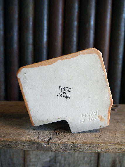アメリカで買い付けましたビンテージのWHO LEFT THIS BEHIND アッシュトレイです。綺麗なカラーリングにユニークなデザインでとても雰囲気があります。陶器素材の灰皿でJAPAN製になります。年代の表記はありませんがデザイン刻印から恐らく1950年代頃かと思います。お部屋のディスプレイ兼コレクションとしてもおすすめのアイテムです。状態は多少の使用感による全体的な多少の汚れ、細かい塗装剥がれや内側に多少の汚れなどはありますが全体的にはディスプレイには問題ない雰囲気のある状態で良いです。あくまでビンテージですので理解のある方のご購入をお願いします。