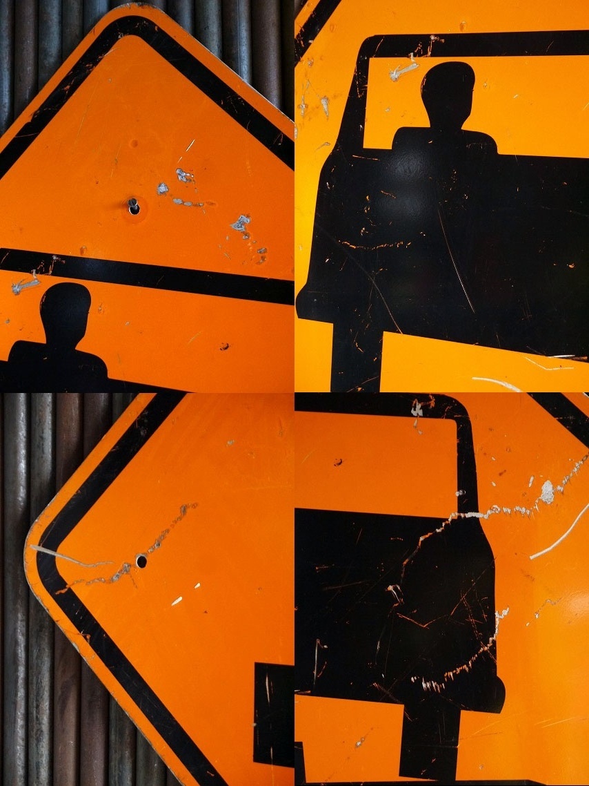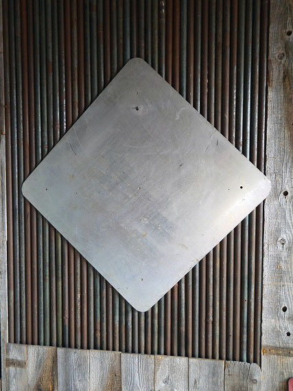 アメリカにて買い付けましたビンテージのCAUTION ROAD BUMPS ロードサインです。オレンジカラーベースに段差注意のデザインとリアルな塗装剥がれが雰囲気がありかっこいいです。スチールアルミ素材のペイント一体仕様(表面はデカール仕様)でデザインから2000年前後頃かと思われます。あまり見かけないデザインで、アイテムガレージやショップ等のディスプレイに最適です。状態ですが多少の擦れ、小傷、汚れ、歪みや凹み、画像の様に取り付け穴周囲にカケや歪み等はありますが、ディスプレイには問題ない状態です。あくまでビンテージですのでご理解いただける方の購入をよろしくお願いします。