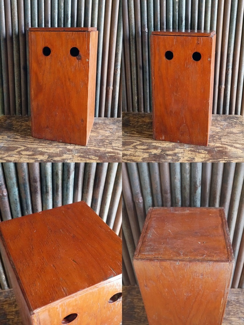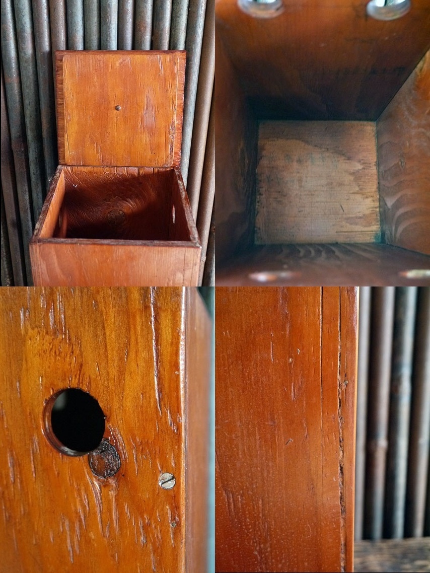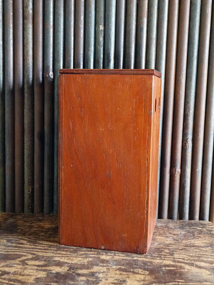アメリカで買い付けてきましたビンテージのハンドメイドランタンケースです。渋いウッドの風合いに手書きのロゴがとても雰囲気があります。ハンドメイドのランタン用収納ケースになります。ウッド素材で、実用兼コレクションとしておすすめです。表記はありませんが恐らく60年代前後頃かと思われます。ビックハット以外のランタンでしたら収納可能です。上蓋の金具裏側にネジ先は少し出ていますのでご注意下さい。状態ですが、小傷、塗装剥がれや金具にサビ汚れ、細かいカケ等はありますが、金具部分も今の所しっかりと閉まり全体的に実用には問題ない状態です。あくまでビンテージになりますのでご理解いただける方のご購入をよろしくお願いします。