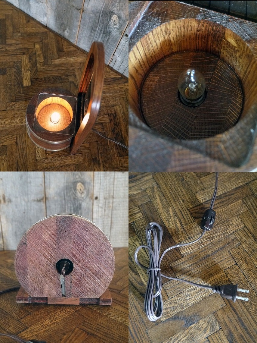 アメリカで買付けましたビンテージのJACK DANIEL'S SINGLE BAREL ライトサインです。クラシックなバレルモチーフのデザインで、画像の様に明かりと付けると非常に綺麗でお店等のディスプレイとして最適です。本体はウッド、フロントはガラス、バレル上のクリアトレイはプラスチック製になります。切り替えスイッチタイプのコンセント仕様ですぐに使用頂けます。シェード内部はE-12口径の電球が1個ついていますので電球が切れた場合はご用意下さい。年代の表記はありませんがデザインから1990年代頃になるかと思います。状態ですが多少の擦れ、傷、汚れはありますが目立つダメージは無く、今のところライトも画像の通り点灯確認済みで、ディスプレイには問題ない状態です。ただあくまでビンテージになりますのでご理解いただける方のご購入をよろしくお願いします。