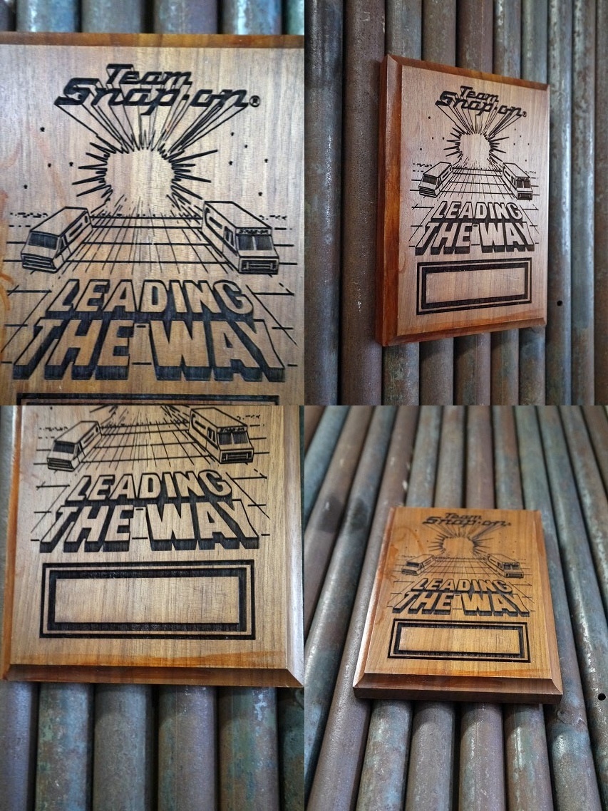 アメリカにて買い付けましたビンテージのSnap₋on Award shieldです。アメリカの大手工具の表彰盾で、アメリカンなデザイン画がとても雰囲気があります。92の表記がありますので1992年製になります。ミニサイズの壁掛け仕様のウッド素材で、店舗やお部屋のディスプレイとしておすすめです。状態は画像の様に多少の擦れ、汚れ、下側の恐らくプレートの剥がれた跡等はありますが、ディスプレイには問題ない程度で雰囲気のある状態で良いです。ただあくまでビンテージのためご理解いただける方のご購入をお願いします。