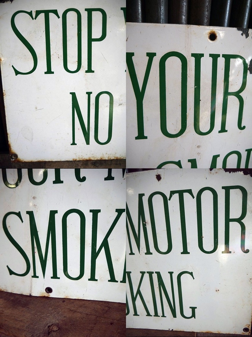 ビンテージ STOP YOUR MOTOR NO SMOKING ホーローサイン