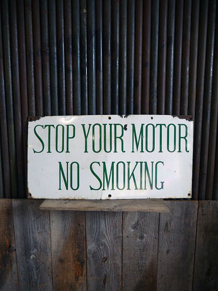 ビンテージ STOP YOUR MOTOR NO SMOKING ホーローサイン [gose-267]