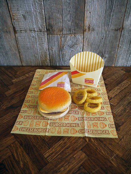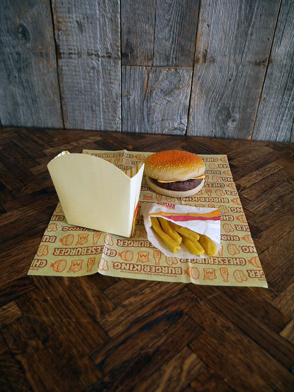 | サイズ | バーガーの直径約9,6cm、オニオンリング直径約5,2cm、ポテトの長さ約8cmになります。 |
