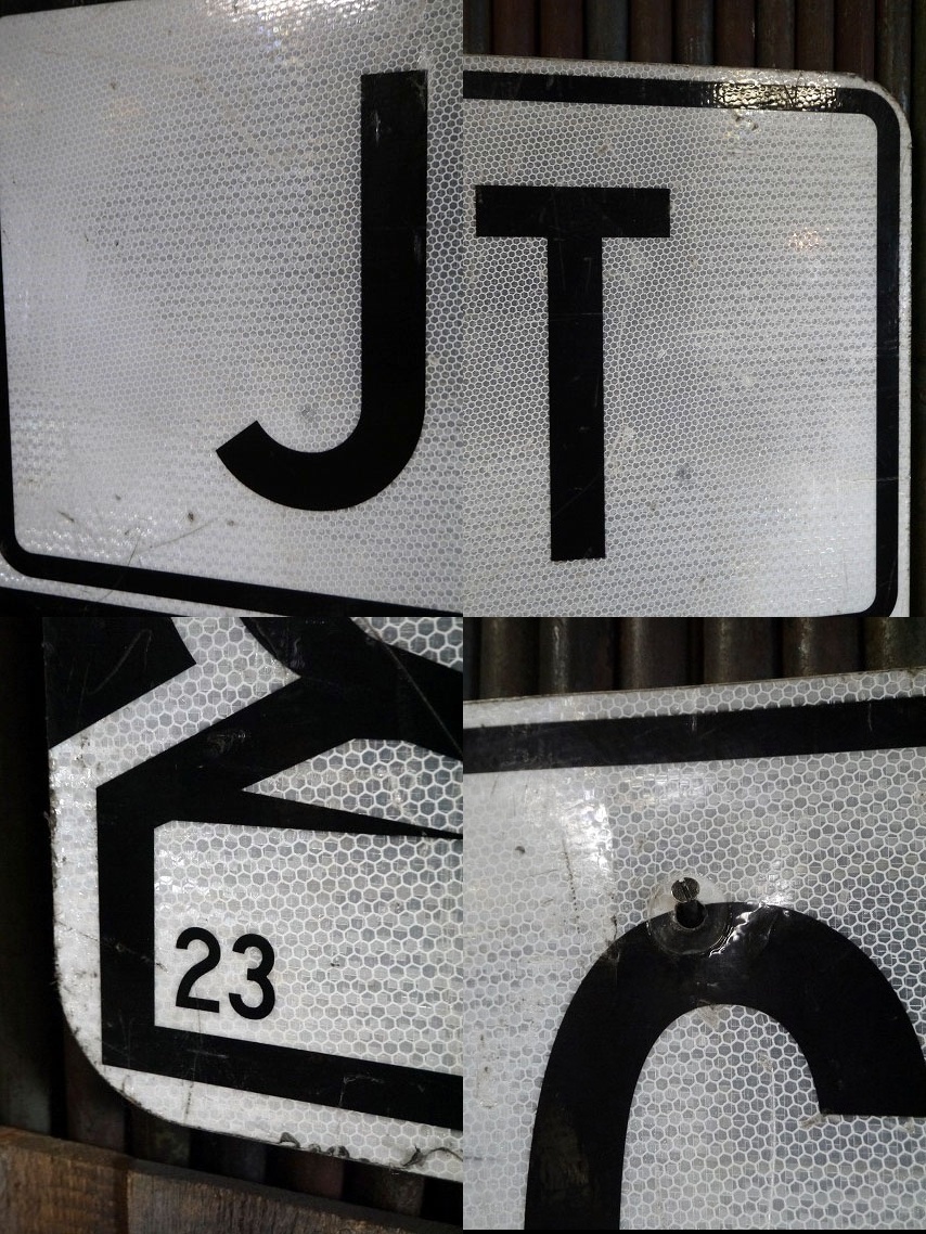 アメリカにて買い付けましたUSAのJCT 202大型ロードサインです。ホワイト化kるブラックカラーにリアルなメタルの風合いがとても雰囲気があります。人気アイテムで、ガレージやショップ等のディスプレイに最適です。スチールアルミ素材ののプリントデカール(ハニカム&ボーダー使用)の反射板タイプになります。裏側に7 23の表記がありますので2023年7月製になります。デラウエア州からメイン州を結ぶ道路の標識看板になります。状態ですが多少の擦れ、傷、汚れ、中央部分から下側にかけて凹みや歪みなどの使用感はありますが、特に目立つ様なダメージはなくジャンク好きの方でしたら問題ないレベルで雰囲気のある状態です。ただあくまでユーズドジャンクになりますのでご理解いただける方のご購入をお願いします。