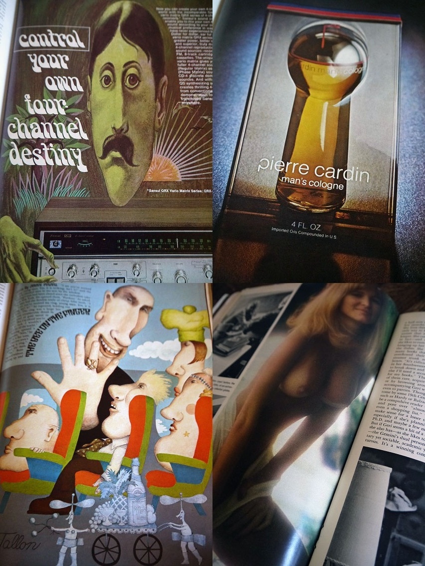 アメリカで買い付けましたビンテージのマガジンです。1973年9月に出版されたアメリカの雑誌『PLAYBOY』で、当時の資料やお部屋やお店などのディスプレイとしてもおすすめです。全270ページでお気に入りのページを切り抜いて額装して飾って頂いても良いかと思います。状態は、色焼け、汚れ、折りたたみシワや細かい破れなどはありますが、ページ抜けはなくディスプレイには問題ない状態です。ただあくまでビンテージのためご理解いただける方のご購入をお願いします。