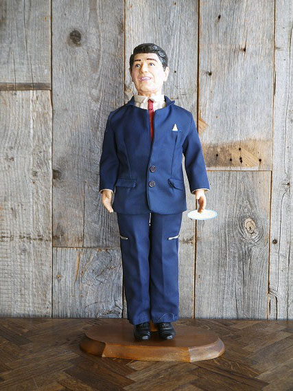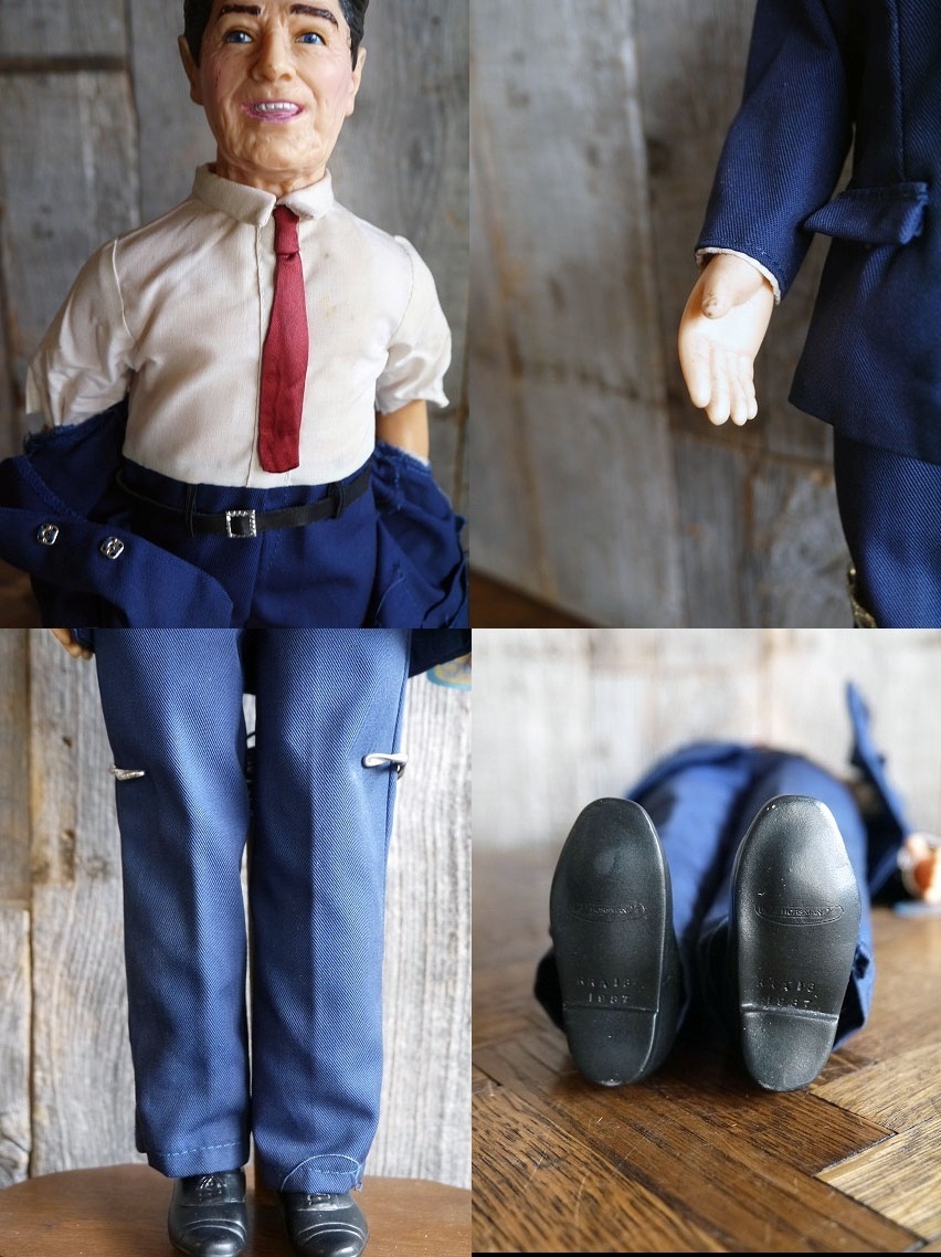 アメリカで買い付けましたビンテージのDOLLです。アメリカの第40代大統領Ronald Reaganデザインの人形になります。HORSMAN社製のハードプラスチック素材、裏の首付近に1987のコピーライト表記がありますので1987年〜80年代後期頃になります。お部屋などのディスプレイとしてオススメです。土台はディスプレイ用で付属しません。状態ですが、多少の洋服や手付近に汚れ、擦れ、傷等はありますが、全体的には目立つダメージもなくディスプレイには問題ない状態です。ビンテージになりますのでご理解いただける方のご購入をよろしくお願いします。