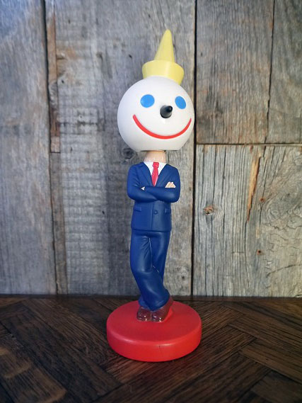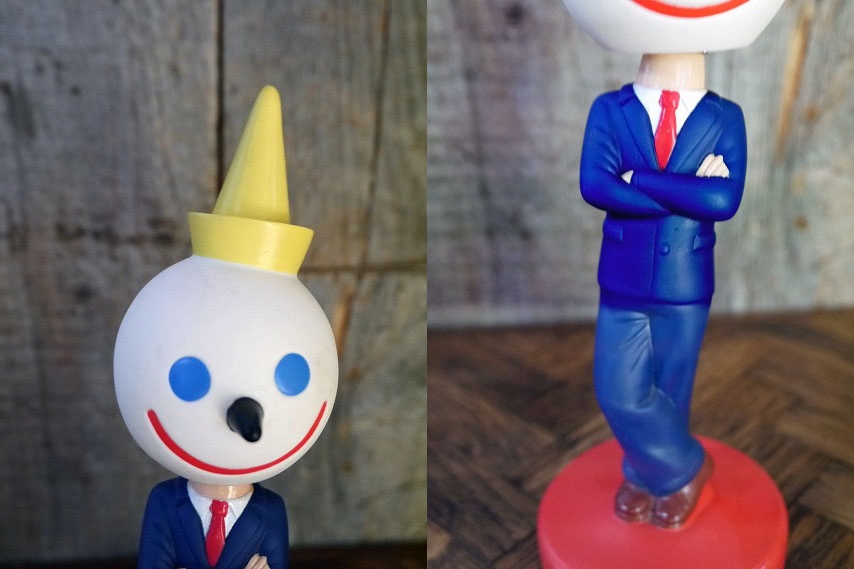 アメリカで買い付けましたUSAのJACK IN THE BOXボビンヘッドです。アメリカのハンバーガーチェーンのマスコットキャラクターで首振りの動作がとても可愛らしいです。ソフビ素材で、年代の表記はありませんがデザインから2000年初期頃かと思われます。お部屋などのディスプレイとしてオススメです。状態ですが、多少の小傷、擦れ、汚れはありますが目立つようなダメージも無く、ディスプレイには問題ない状態です。あくまで年数の経過しましたD.STOCK品になりますのでご理解いただける方のご購入をよろしくお願いします。