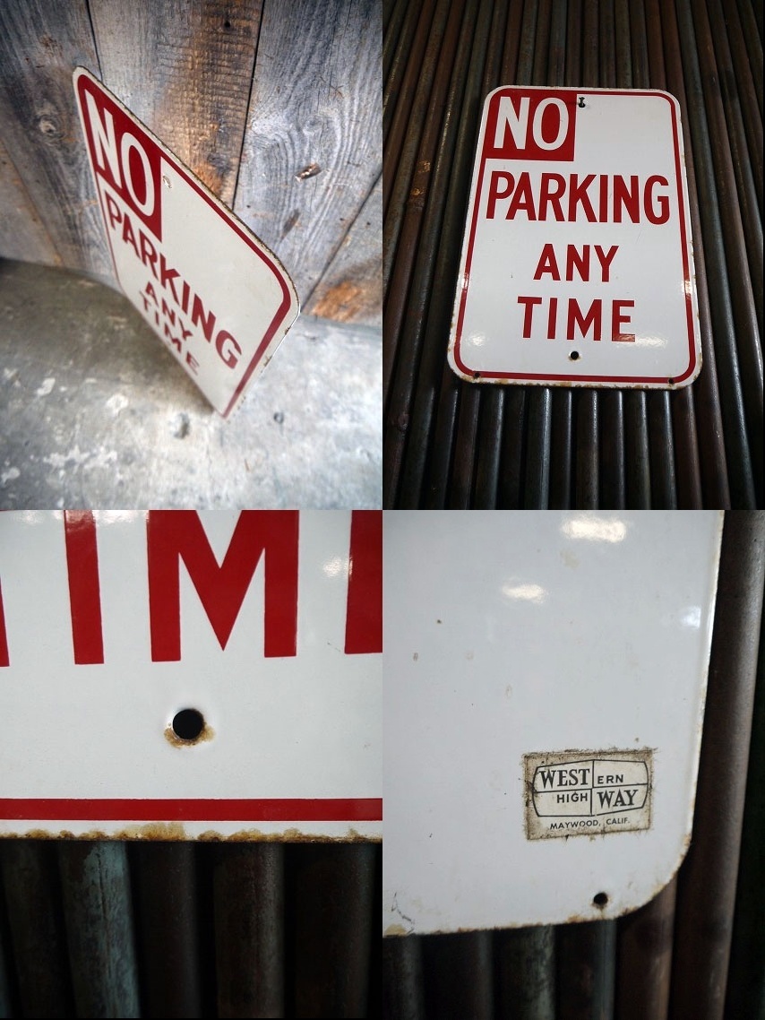 ビンテージ NO PARKING ANY TIME ホーローロードサイン