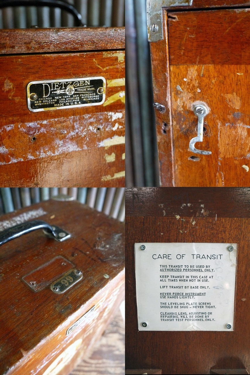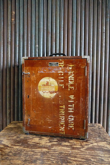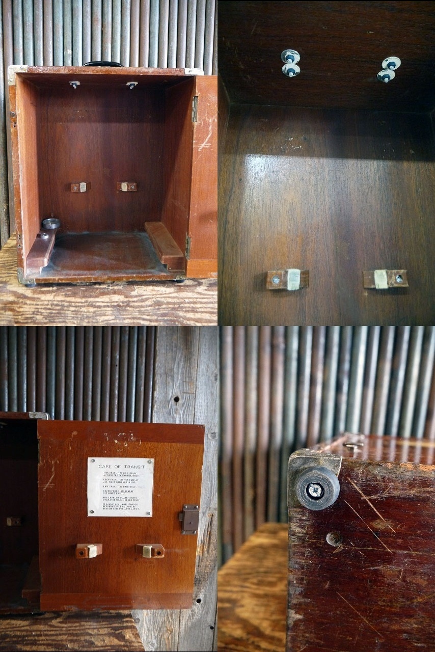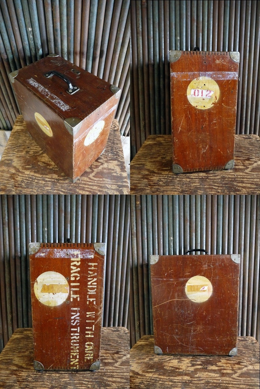 アメリカで買い付けたビンテージのEDIETZGEN ウッドケースです。リアルなメタルの風合いに、アメリカンなロゴプレート&ステンシルも抜群に雰囲気がありカッコイイです。 1885年にアメリカシカゴにて創業してコンパス機器メーカーの収納ケースで、ウッド×持ち手メタル素材、年代の表記はありませんがデザインから1940年代頃になるかと思います。ガレージや店舗などのディスプレイとしておすすめです。状態ですが経年により金属劣化、持ち手や底面のラバー内側のネジ補修、フロントフック金具受けの欠損、傷や汚れ、小穴や細かいチップなどはありますが、ディスプレイには問題なくビンテージならではの雰囲気のある状態かと思います。だあくまでビンテージになりますのでご理解いただける方のご購入をよろしくお願いします