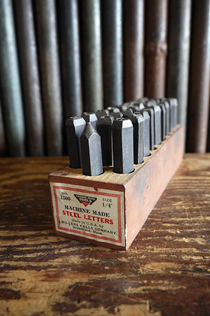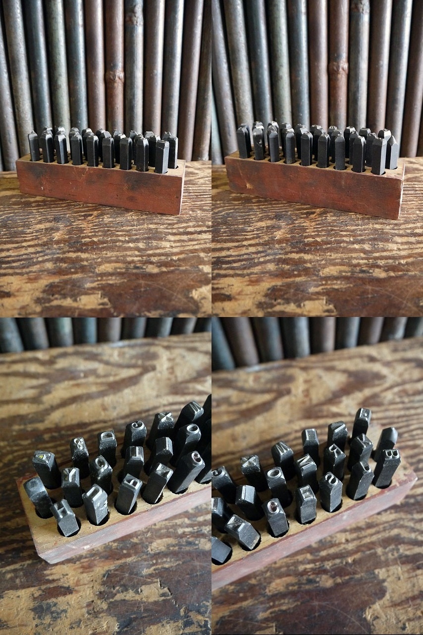 アメリカで買い付けましたビンテージのアメリカで買い付けたビンテージのSTEEL LETTERS STAMPセットです。金属製でハンマーで鉄や銅、真鍮のプレートやフレームに刻印するアイテムです。アルファベットA〜Zまでと、・ 、&の計28本セットです。木製の箱付きで MILLERS FALLS COMPANYから発売のデザインから1950〜60年前後頃のアイテムになるかと思います。実際に使用可能かと思いますが、ビンテージの古い商品になりますのであくまでディスプレイとしてお考え下さい。状態は多少の擦れ、傷、汚れ、木箱にネーム刻みやペーパーデカール部分の剥がれはありますが目立つ様なダメージは無く良いと思います。ビンテージジャンクですのでご理解いただける方のご購入をよろしくお願いします。