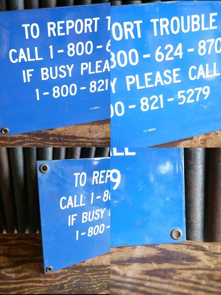 ビンテージ TO REPORT TROUBLE CALL ホーローサイン