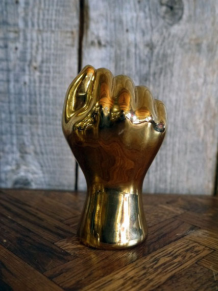 アメリカで買い付けたビンテージのRIGHT ON HANDオブジェです。GOLDカラーリングにHANDデザインがカッコイイです。陶器素材の手頃なサイズで雰囲気の良いハンドオブジェです。1960〜70年代のヒッピー、サーフ、ファッションアイテムetc等には欠かせないアイテムかと思います。年代の表記はありませんが2000年以降になるかと思います。コレクションディスプレイとしてもオススメです。状態ですが多少保管の際にできた擦れ、汚れなどはありますが、目立つダメージもなく良いです。ビンテージにご理解のある方のご購入をお願いします。