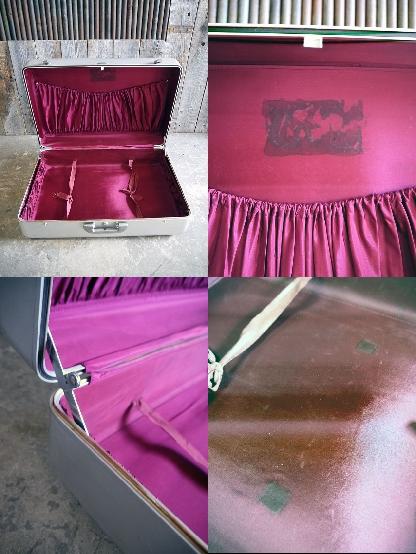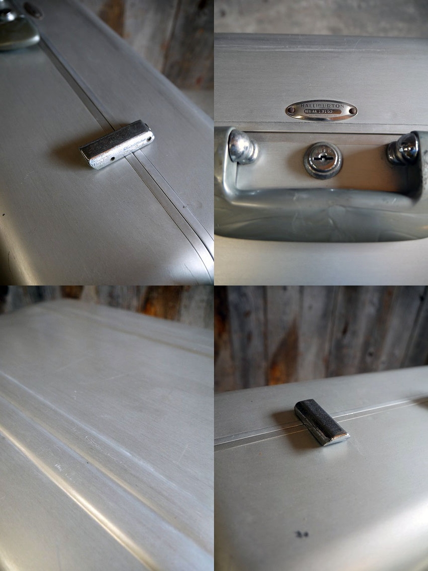 アメリカにて買い付けてきましたビンテージのHARLLIBURTONトランクケースです。プレートロゴにZEROが付かない1959年以前のものになります。鍵はありませんが金具のロック、開閉は今の所問題はありません。状態ですが金属特有の劣化、表面に小傷や擦れ、汚れ、内側生地に染み汚れや多少の化粧水の臭いといった使用感はありますが使用に差し支えがでるような目立つダメージもなく全体的には実用兼ディスプレイに問題ない状態だと思います。ただあくまでビンテージになりますのでご理解いただける方のご購入をお願いします。