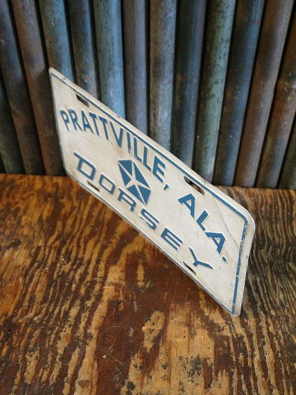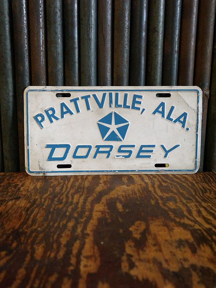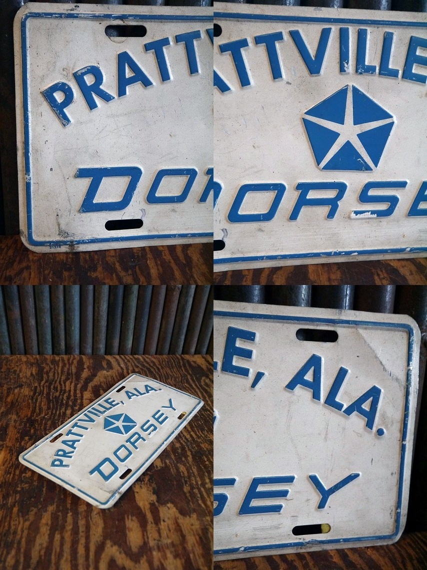 アメリカにて買い付けしましたビンテージのDORSEYナンバープレートです。アメリカアラバマ州のクライスラー ディーラー車に取り付けられていたと思われるナンバープレートになります。軽いスチールアルミ素材で、年代の表記はありませんがデザインから1980〜1990年代前後頃のナンバープレートになります。状態ですが、多少の擦れ、傷、汚れや画像の様に中央部分等に凹みや歪みなどありますが、ディスプレイには問題ない雰囲気のある状態です。ただあくまでユーズドですのでご理解いただける方のご購入をよろしくお願いします。