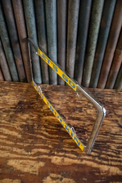アメリカにて買い付けましたビンテージのLET’S GO FUN TRUCKIN'ナンバープレートフレームです。クロムフレームにアメリカンなカラーリング&デザインがとても雰囲気があります。年代の表記はありませんがデザインから1970年代頃のアメリカのナンバープレート用フレームになります。お店やお部屋のディスプレイにおすすめです。状態は未使用かと思いますが、保管や経年経過によるフレームに多少の擦れ、汚れや細かい塗装剥がれ等はありますが、しっかりとした作りでディスプレイには問題ない状態で良いです。あくまでビンテージジャンクのためご理解いただける方のご購入をお願いします。