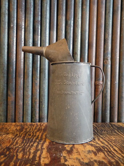 アメリカで買い付けましたビンテージのPenn₋Rad MOTOR OIL Filler缶です。渋いリアルなメタルの風合い&エンボスロゴデザインがとても雰囲気があります。中身は入っていません。メタル(鉄)素材で年代の表記はありませんがデザインから1930〜40年前後頃かと思われます。状態はサビ等の金属劣化、傷やOIL汚れ、多少の凹み等の使用感はありますが、ディスプレイとしては問題ない雰囲気のある状態です。ただあくまでビンテージになりますので理解のある方のご購入をお願いします。