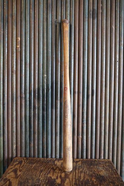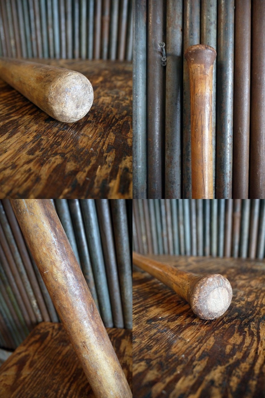 アメリカで買い付けたビンテージのMcLAUGHLIN MILLARD ADIRONDACK バットです。渋いウッドベースにロゴ刻印デザイン&ペイントがカッコイイです。ウッド素材の雰囲気の良いソフトボール様のバットです。年代の表記はありませんが デザインから1950年前後頃になるかと思います。コレクションや店舗ディスプレイとしてオススメです。状態は画像のように保管の際に出来た汚れや傷やスレ、色褪せ、グリップエンドのテープ欠損、ペンキ汚れ等がありますが雰囲気がありディスプレイには問題ない状態です。あくまでビンテージになりますのでご理解いただける方のご購入をよろしくお願い致します。