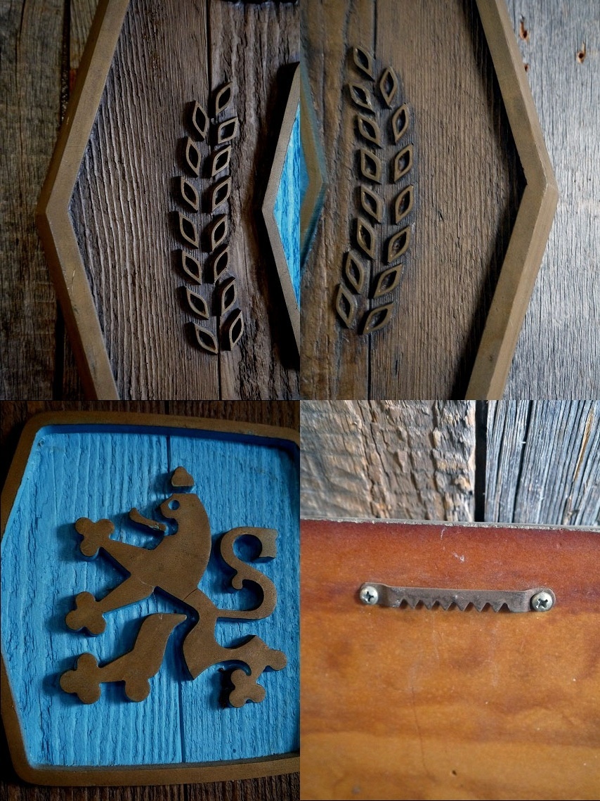 アメリカにて買い付けましたビンテージの MOLSON GOLDEN サインです。カナダの老舗人気アルコールメーカーでクラシカルなウッド調OLDゴデザイン&カラーリングがとても雰囲気があります。恐らく圧縮発砲素材&表面コーディングと思われ、表記はありませんがデザインから恐らく1970年代頃になるかと思います。裏側には壁掛け用のチェーンが付属します。店舗やお部屋からショップのディスプレイまで幅広くおすすめです。状態ですが経年による傷やスレ、多少の反りや金具部分にサビなどはありますがディスプレイには問題ない程度で雰囲気のある状態で良いです。ただあくまでビンテージのためご理解いただける方のご購入をお願いします。
