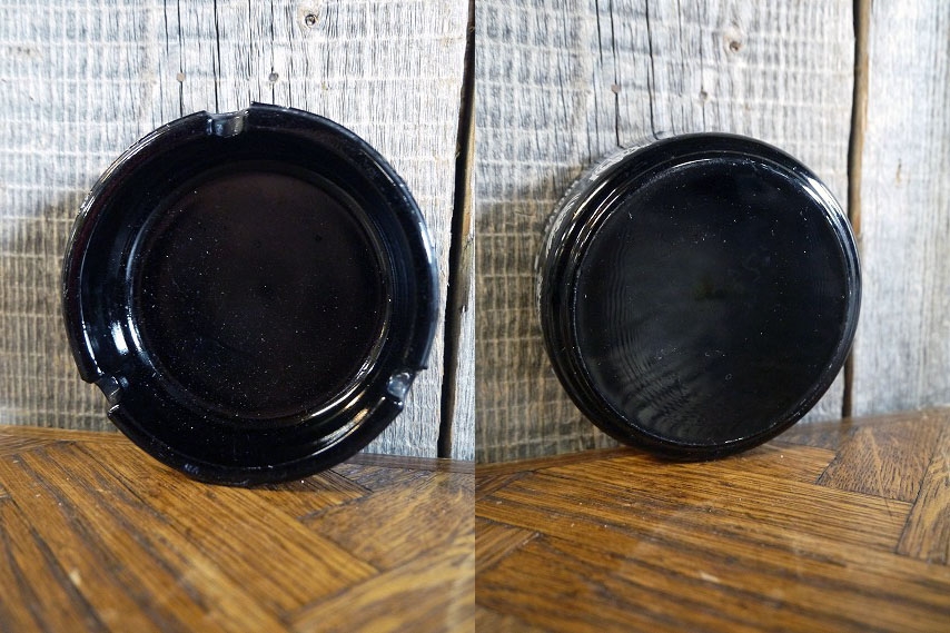 アメリカで買い付けましたビンテージのGOLDEN NUGGETガラス灰皿です。ブラックアメジストガラスにアメリカンなロゴデザインが非常に良い雰囲気です。表記はありませんが年代的には1970年代頃になります。状態ですが、多少の擦れ、生産工程上に出来たと思われる上側タバコ置き部分に細かい突起や淵に極小さなカケはありますが、ディスプレイに問題ないレベルで良いです。(灰皿として実用の場合には古い商品になりますので熱によりヒビの部分が割れる可能性もございますのでご注意ください。)ただあくまでもビンテージになりますのでご理解いただける方のご購入をお願いします。