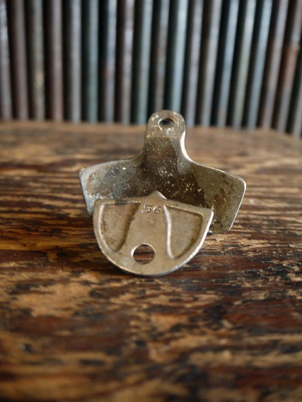 アメリカで買い付けましたビンテージのCoca-Cola Bottle Openerです。リアルなメタルの風合い&ブランドロゴデザインがとても雰囲気あるアイテムです。アメリカのドリンクメーカーの刻印入り栓抜きで、復刻から粗悪なブートがありますが、こちらは当時のオリジナルになります。しっかりとした鋳鉄素材で、実用も可能かと思いますが古いアイテムになりますので、ディスプレイとしておすすめです。裏側に56の刻印が確認できますので1956年製になります。状態は経年による小傷、金属劣化による多少のサビ、汚れ、塗装剥がれ、ペンキ汚れ等はありますが、ディスプレイには問題ない状態でビンテージならではの雰囲気で良いです。あくまでビンテージですのでご理解いただける方のご購入をよろしくお願いします。