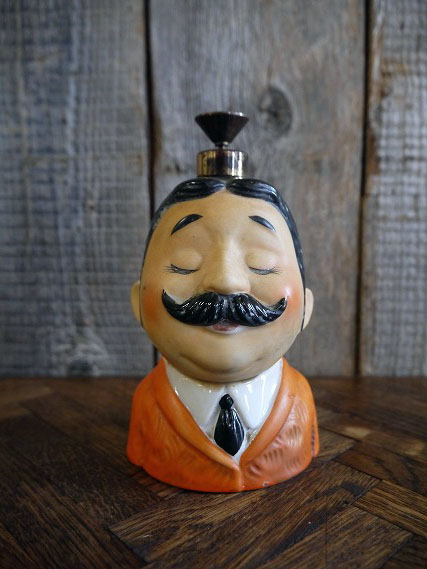 アメリカで買い付けましたビンテージのPerfume Bottle人形です。ユーモアのある特徴的な顔の表情やハンドペイントの温もりのあるカラーリングがとても雰囲気があります。陶器素材で、香水の容器になります。年代の表記はありませんがデザインから1950〜60年代頃になります。お部屋のインテリアからショップ等のディスプレイまで幅広くおすすめです。状態ですが経年による多少の小傷、擦れ、細かい塗装剥がれや多少香水の匂い等はありますが、ディスプレイとしては問題ない雰囲気のある状態です。ただあくまでビンテージになりますのでご理解いただける方のご購入をお願いします。