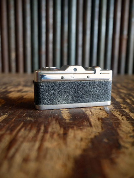 アメリカで買い付けましたアンティークのMikroma カメラです。16mmフィルムタイプのミニカメラで、無骨でクールなシルエットで非常にお洒落です。コンパクトなサイズとレトロな雰囲気です。チェコスロバキア製で、実際の使用はできませんのでお部屋のインテリアからショップのディスプレイまで幅広くおすすめです。表記はありませんがデザインから1950年前後頃のカメラになるかと思います。状態ですが金属特有の劣化、塗装剥がれ、小傷や汚れ、レザーケース蓋に切れやダメージありますがディスプレには問題ない雰囲気のある状態です。あくまでアンティークジャンクですのでご理解いただける方のご購入をよろしくお願いします。