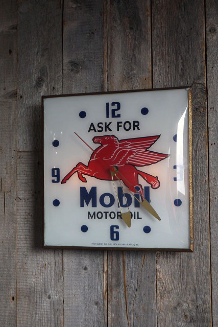 ビンテージ Mobil MOTOR OIL ライトサインクロック