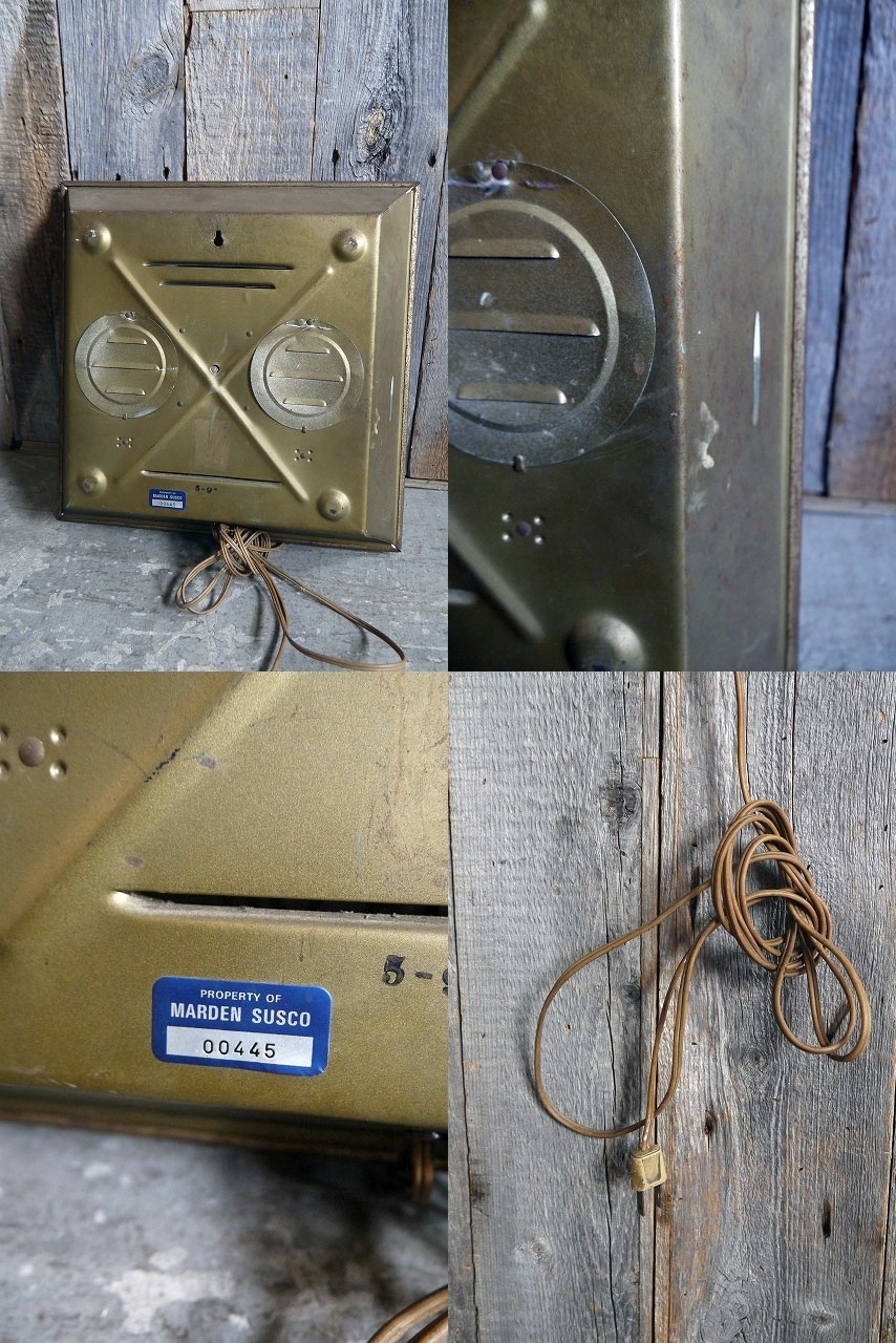 アメリカで買付けましたビンテージのライトサインクロックです。アメリカの石油会社の販促用で、トリコロールカラーの盤面にお馴染みのロゴデザインが抜群のデザインセンスで、画像の様に明かりと付けると非常に綺麗でお店等のディスプレイとして最適です。1956年製のガラス×メタル素材、電球は26mm口径2個使用しますが付属しませんのでご用意下さい。ここまでのデザインの良いものは珍しく貴重なアイテムになります。針部分はリペイント&補修されています。コンセントコードはオリジナルになります。状態ですが画像の様に金属部分にサビ、ガラス面淵細かいスレチップや傷、金属部分にサビなどはありますが、今のところライトも画像の通り点灯確認済みで時計も1日使用して時差もほとんど無く、ディスプレイにも問題ない状態で良いです。ただあくまでビンテージですのでご理解いただける方のご購入をよろしくお願いします。