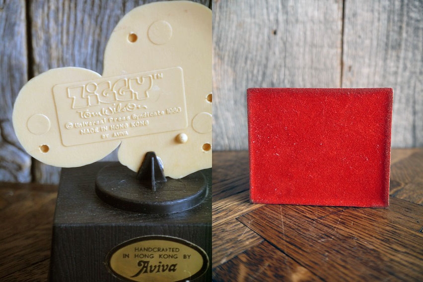 アメリカで買い付けましたビンテージのメッセージドールです。ZIGGYが破れたガットのテニスラケットを持っている可愛らしいデザインでいプラスチック素材で、裏面に1980のコピーライト表記&HONG KONG 表記が確認できますので1980年〜80年代初期頃になります。お部屋のインテリアからショップのディスプレイまで幅広くオススメです。状態ですが多少の擦れや細かい汚れ、底面フェルトに色褪せ汚れはありますが、ディスプレイには問題ない程度で良いです。ただあくまでビンテージになりますのでご理解いただける方のご購入をよろしくお願いします。