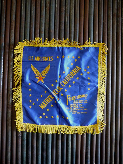 アメリカで買い付けましたビンテージのクッションカバーです。U.S.AIRFORCEのロゴデザイン入りでとても雰囲気があります。レーヨンもしくはアセテート素材で、恐らく1950年代前後頃かと思います。店舗やお部屋からショップまで幅広くおすすめです。状態ですが画像の様に多少の擦れやステッチフリンジの解れや生地の擦れやシワなどはありますが、使用感もなくディスプレイには問題ない雰囲気のある状態で良いです。ビンテージにご理解のある方のご購入をお願いします。