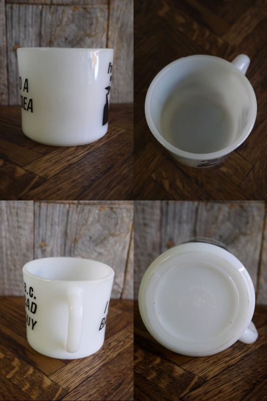 アメリカで買い付けましたビンテージの1776₋1976マグカップです。ミルクガラスにアメリカンなロゴデザインがとても雰囲気があります。厚みのあるミルクガラス素材で、アメリカ建国200周年を記念して作られた1976年製のマグカップなります。状態ですが使用感や目立つダメージはなくディスプレイには問題の無い状態です。ただあくまでビンテージですのでご理解いただける方の購入をよろしくお願いします。