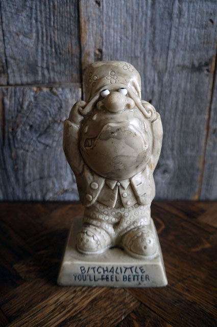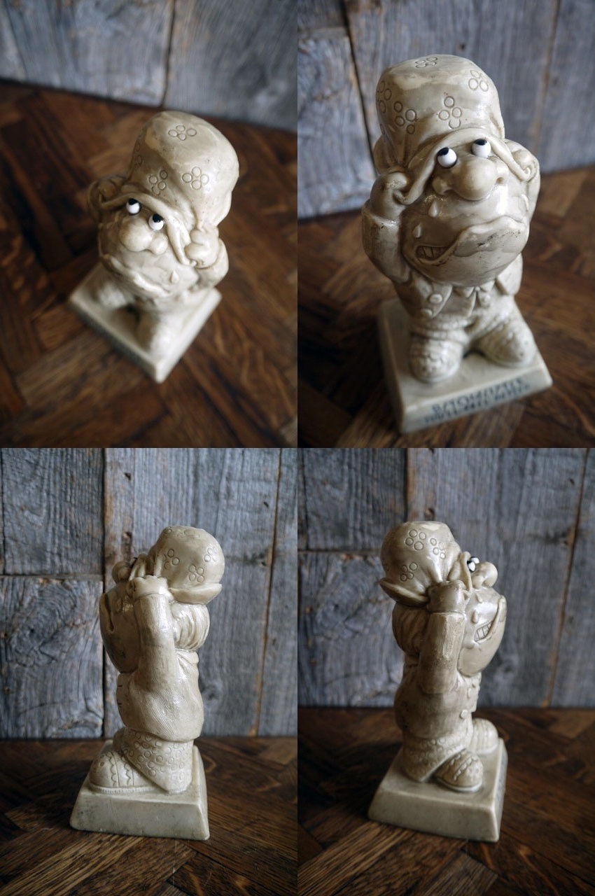 アメリカで買い付けましたビンテージのBITCHALITTLEメッセージドールです。アメリカンでユニークデザインが可愛らしく雰囲気があります。お部屋のディスプレイとして大変オススメです。土台裏側の刻印から1970年代のW&R BERRIES COS'S 社製になるかと思います。状態ですが、画像の様に汚れ、傷、擦れ、底面フェルトにダメージ等はございますがディスプレイには問題ない状態です。あくまでビンテージになりますのでご理解いただける方のご購入をお願いします。