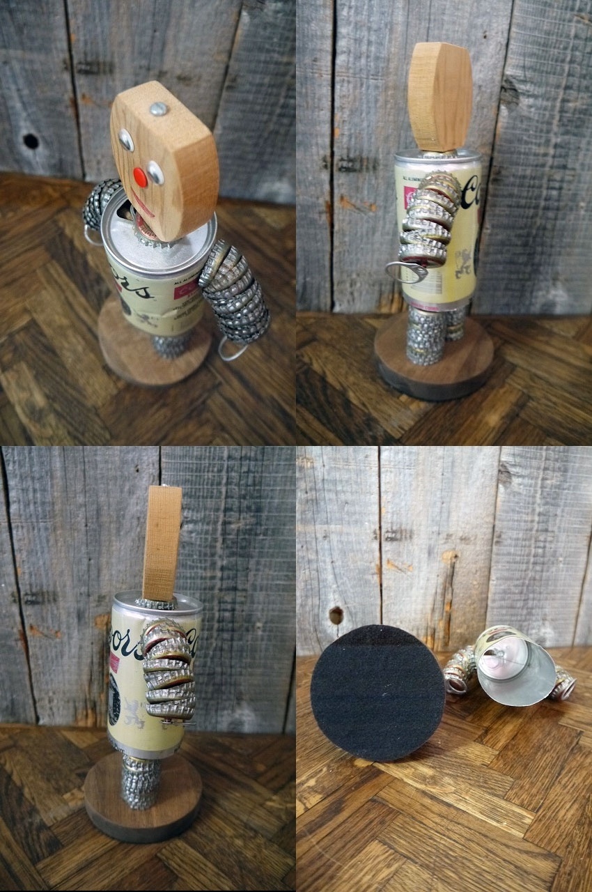 アメリカで買い付けたビンテージのCOORS リメイクボトル人形になります。アメリカの人気ビールメーカー銘柄coorsの空き缶&ボトルキャップを使用した当時の人形で、アメリカンなカラーリング&デザインが可愛らしいです。本体部分を上げるとギミックがでます。軽いメタル×ウッド素材で、表記はありませんがデザインから1970年代頃になります。古い商品になりますのでディスプレイとしてご使用下さい。状態は経年による傷、汚れ、缶の凹み、多少の傾き、底面部分のリペアやフェルト貼りなどはありますがディスプレイには問題ない雰囲気のある状態かと思います。あくまでビンテージですのでご理解いただける方のご購入をよろしくお願いします。